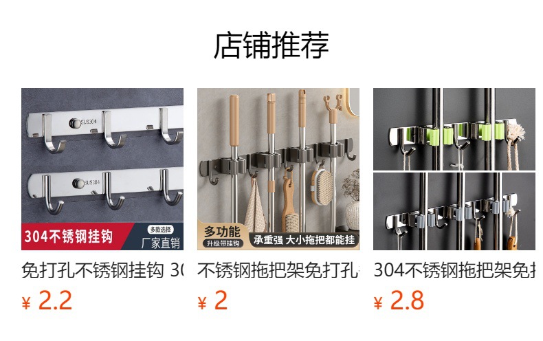 304ステンレスのモップ棚は穴を開けないで多くのモップをフックします。
