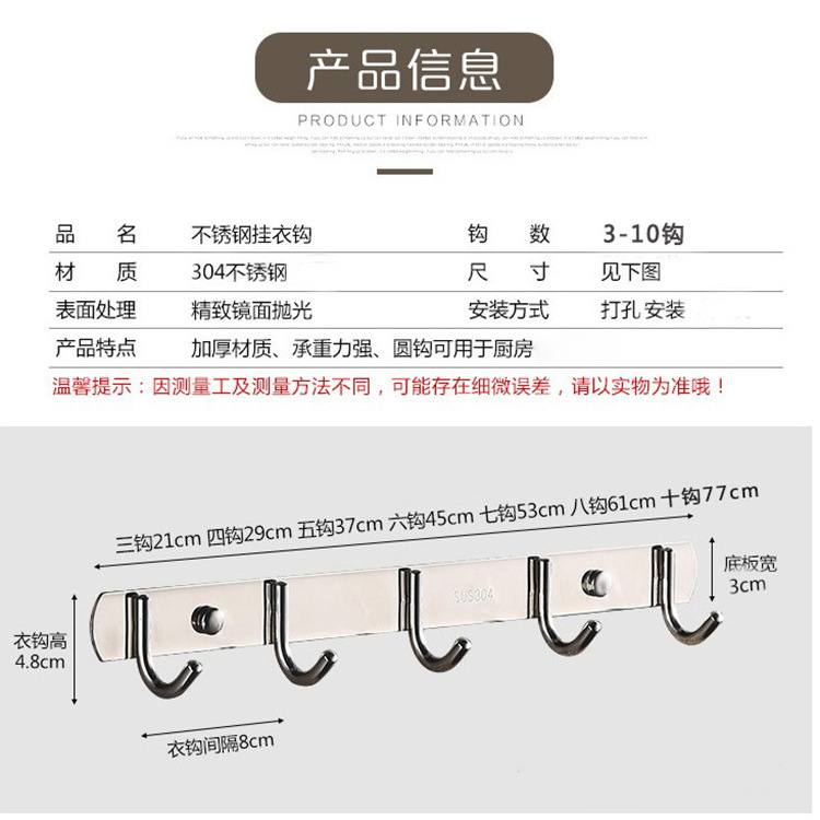 304ステンレスハンガーフックトイレタオルフックフックキッチンフック壁掛けドアフック