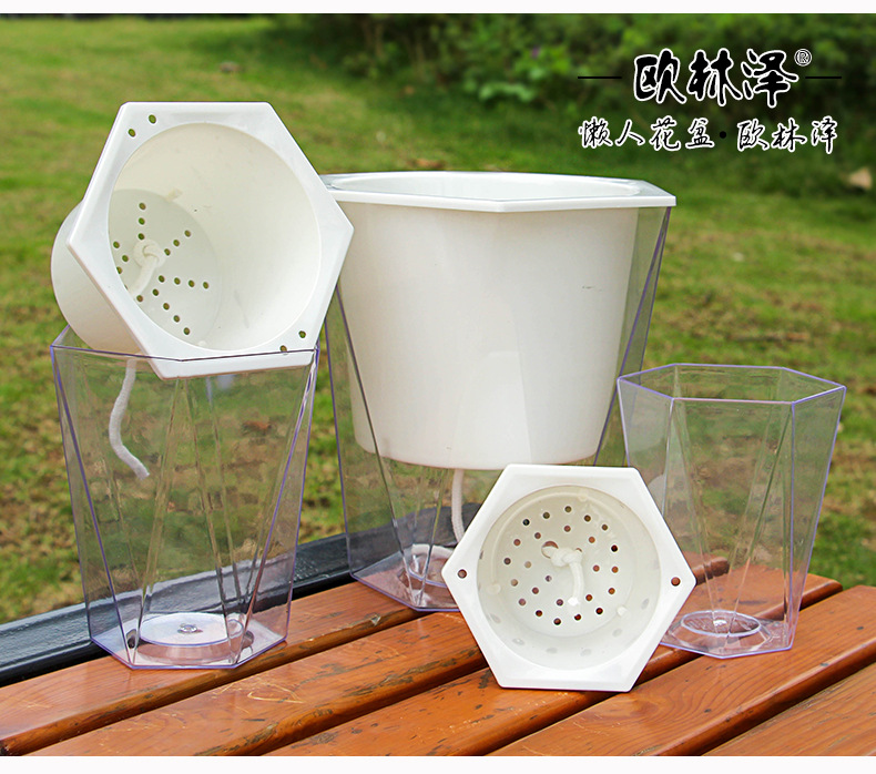 クロスボーダー Olinze 植木鉢自己吸水怠惰な植木鉢家庭用樹脂植木鉢透明二重層植木鉢多肉植物植木鉢