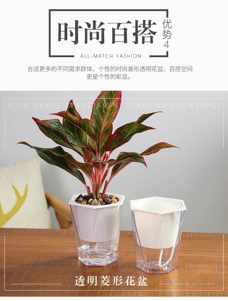 欧林泽 自吸水式植木鉢 ひし形 大型 全透明プラスチック 多肉植物 水耕栽培植木鉢 シンプルでおしゃれな鉢