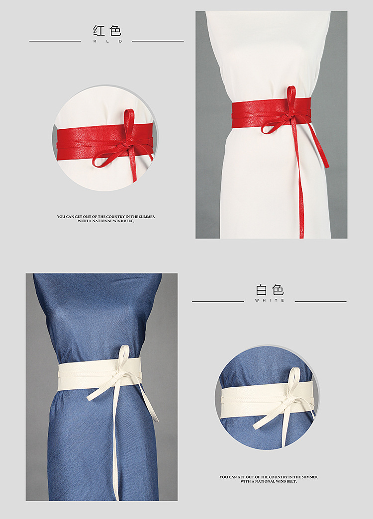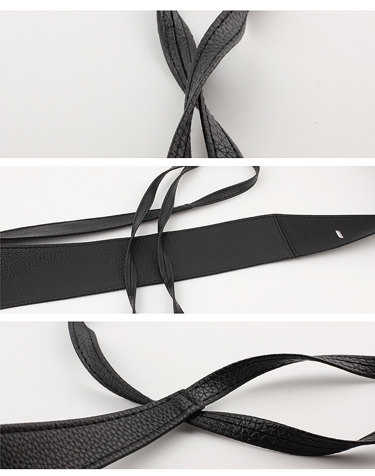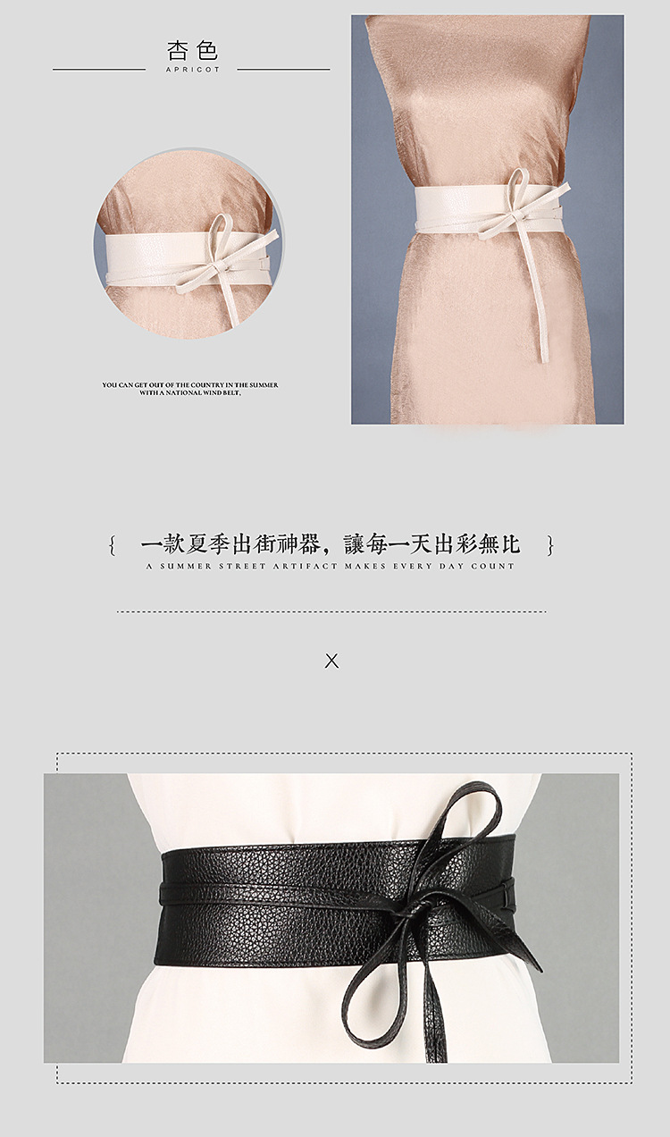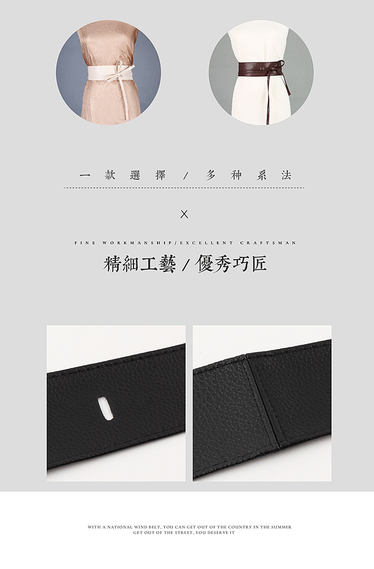 瑛菲娜韓国版女性pu模造皮腰封上質皮質漆面結びベルトカジュアル長型ベルト
