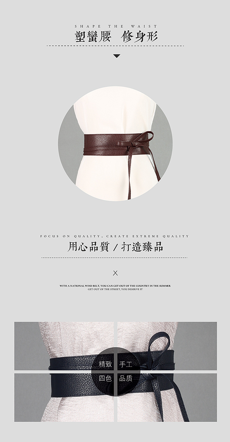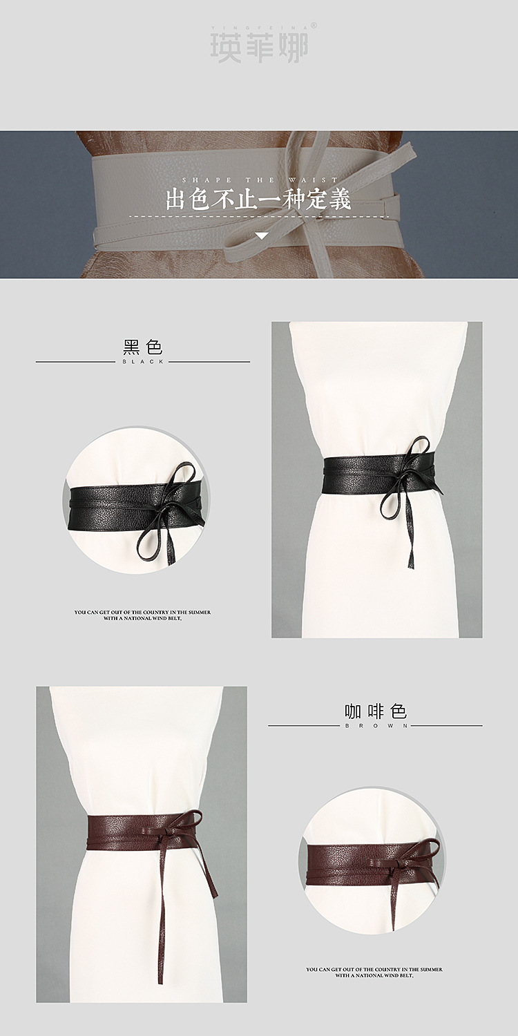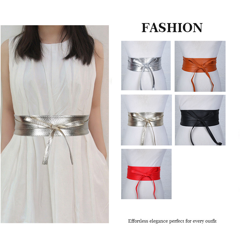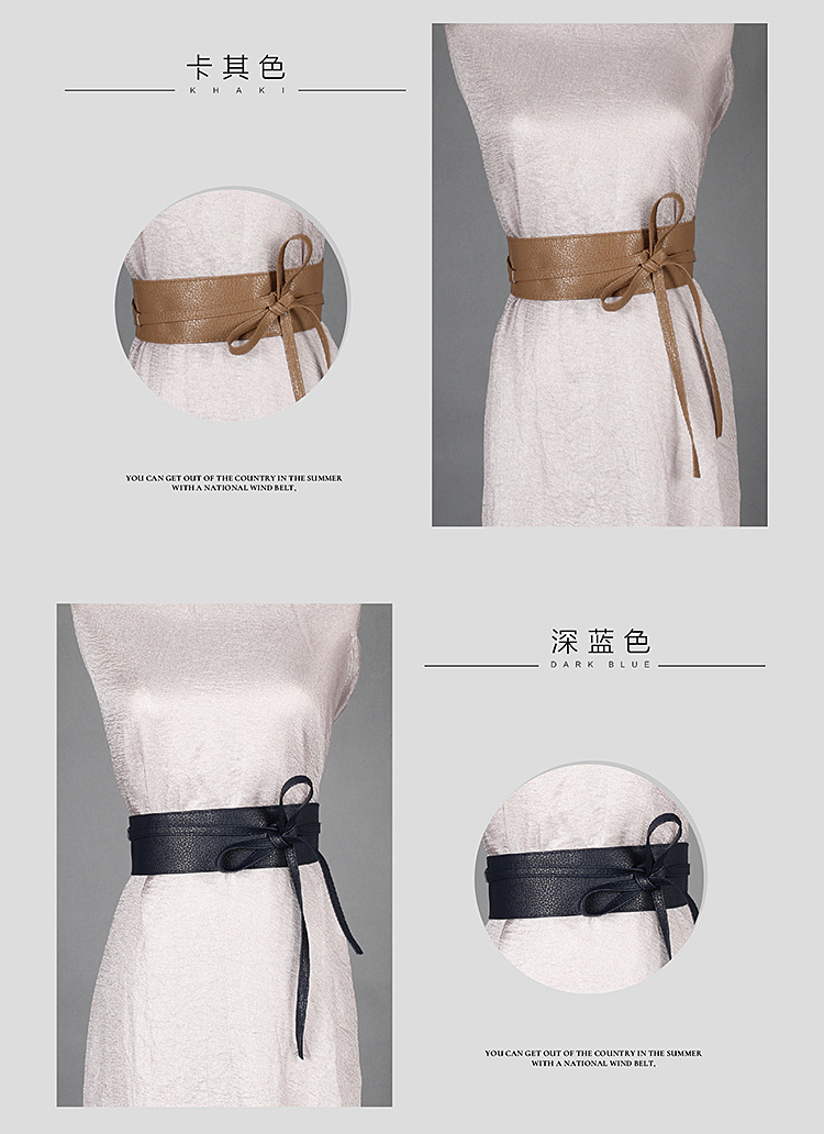 瑛菲娜韓国版女性pu模造皮腰封上質皮質漆面結びベルトカジュアル長型ベルト