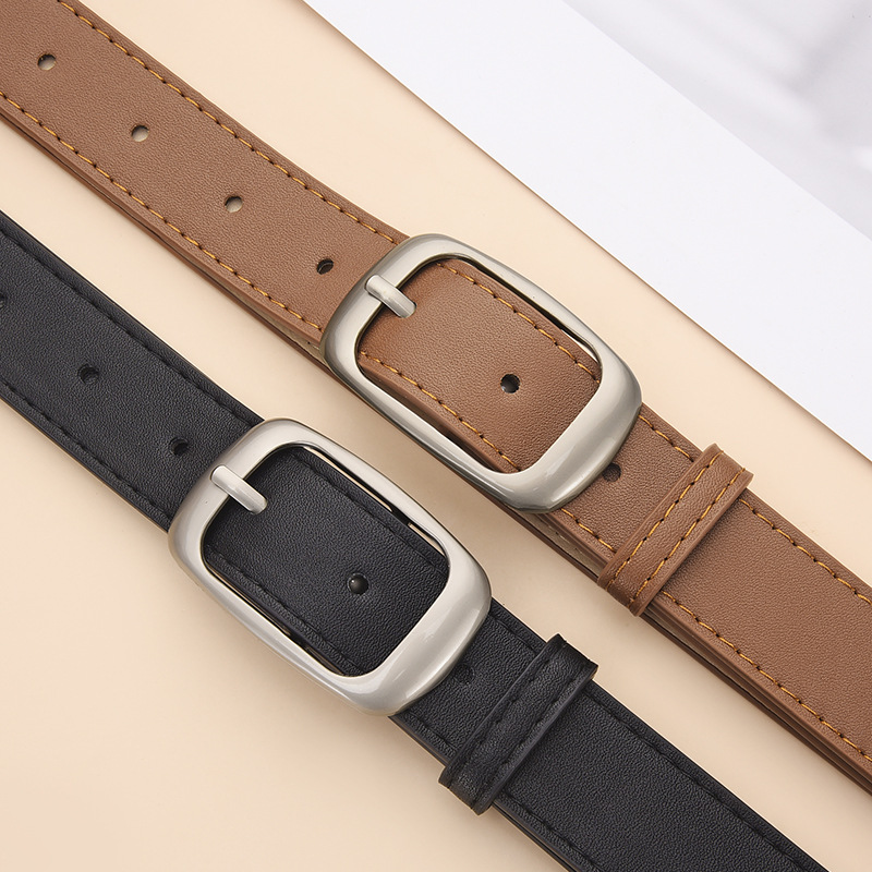 新しいシンプルな銀のボタンの3つのセットの女性のベルトの高級感は学生の青年のジーパンの細いベルトを飾ります。