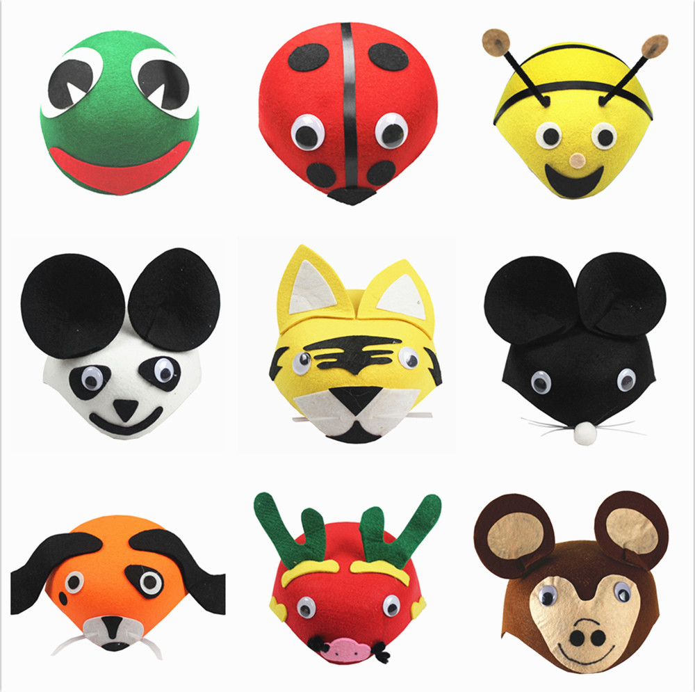 六一幼稚園のショーパーティーはCOS道具不織布のアニメ動物の帽子を飾っています。