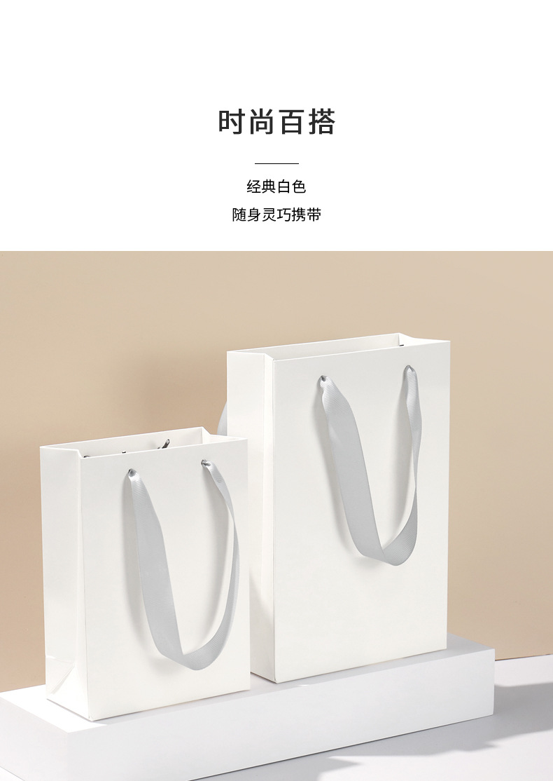现货白卡手提纸袋加厚材质烫金LOGO可印刷广告企业礼品袋定制批发