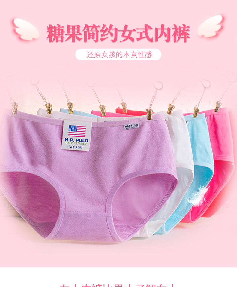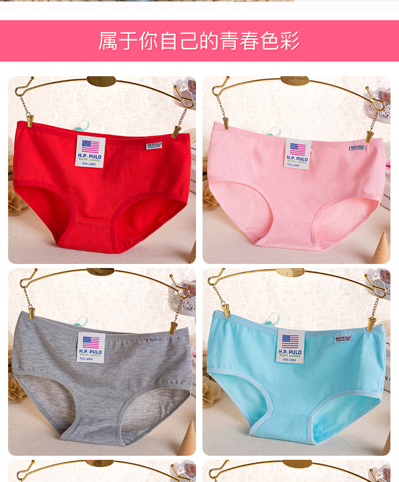 A001下着女性純綿卸売り女性下着純色キャンディー色少女学生中腰純綿三角パンツ