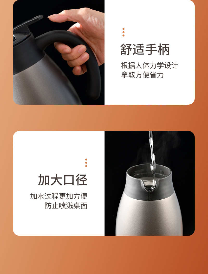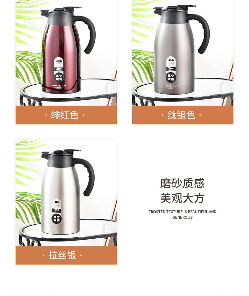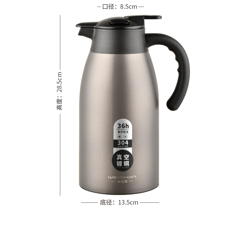 定制304食品级不锈钢保温壶家用热水壶2.0L大容量咖啡壶保温水壶