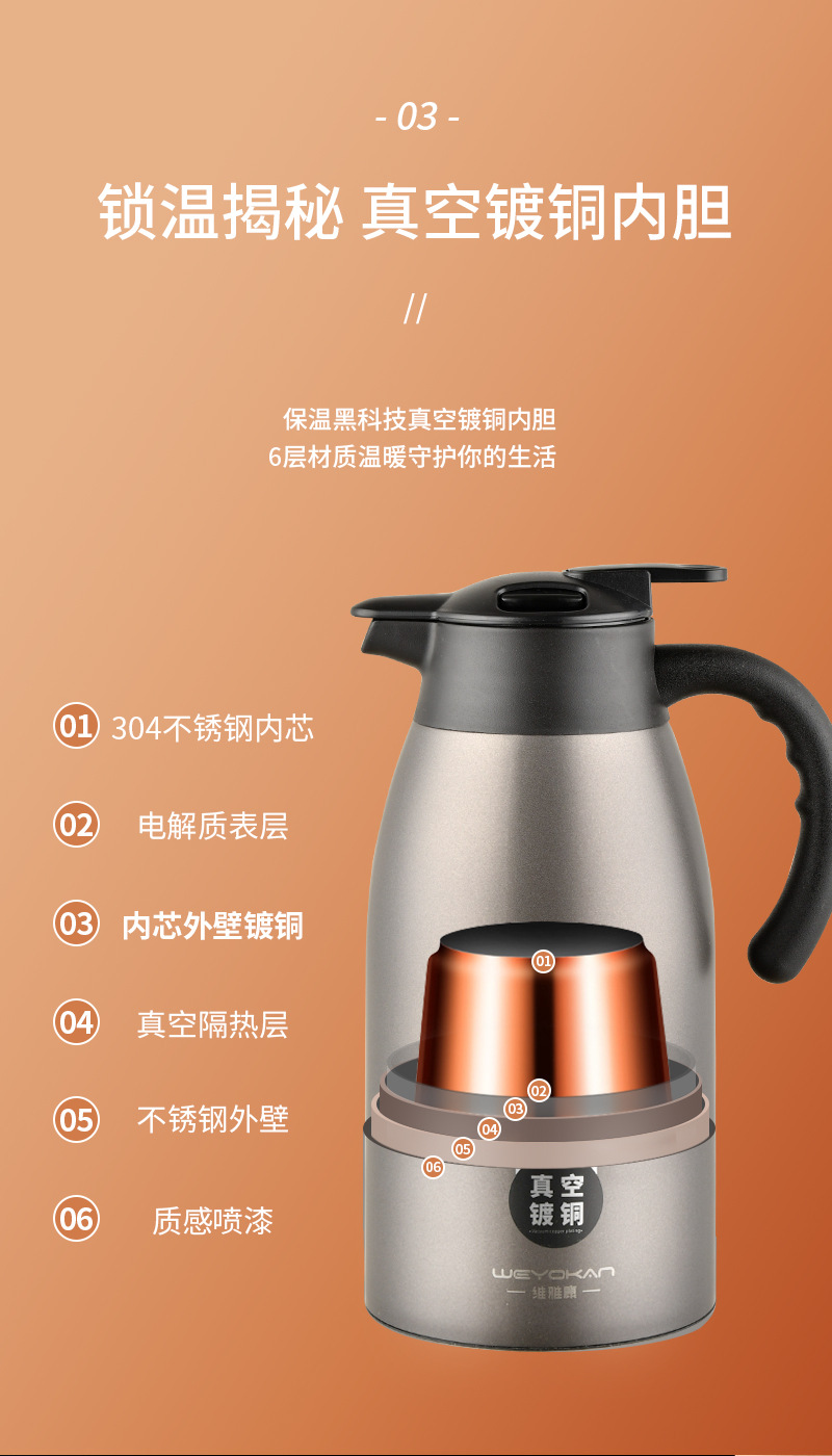 新品維雅康保温ポット316ステンレス保温ポット知能デジタル表示銅メッキ真空保温ポット