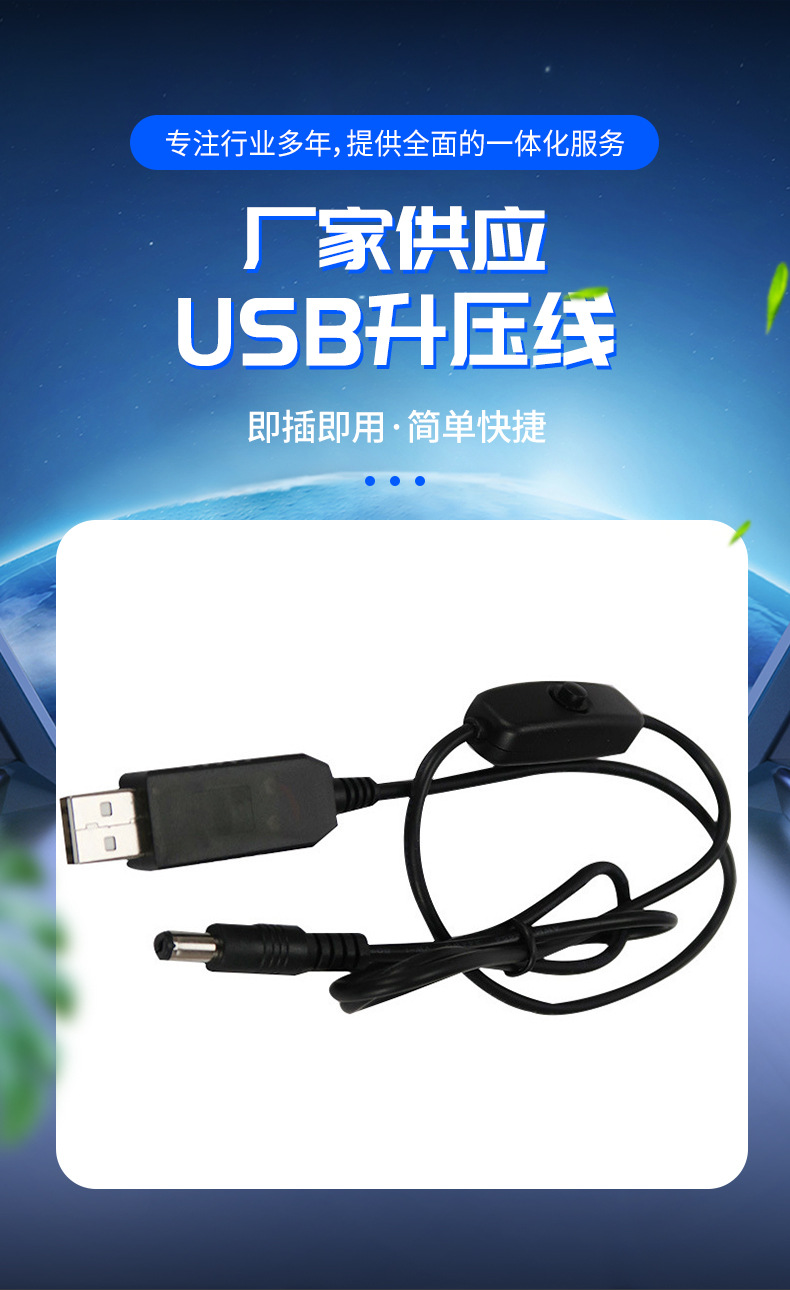 調整可能な昇圧ケーブル電源USBケーブル5Vから9V/12VへのUSB昇圧ケーブル丸型USBケーブルプライベートモデルソースメーカー