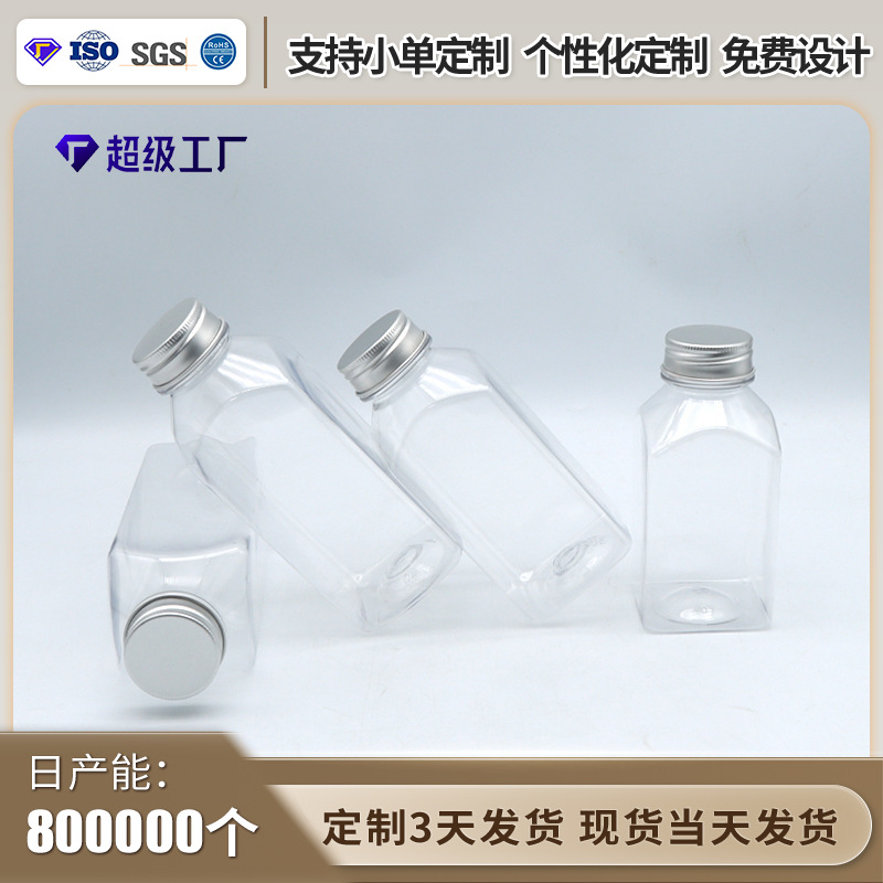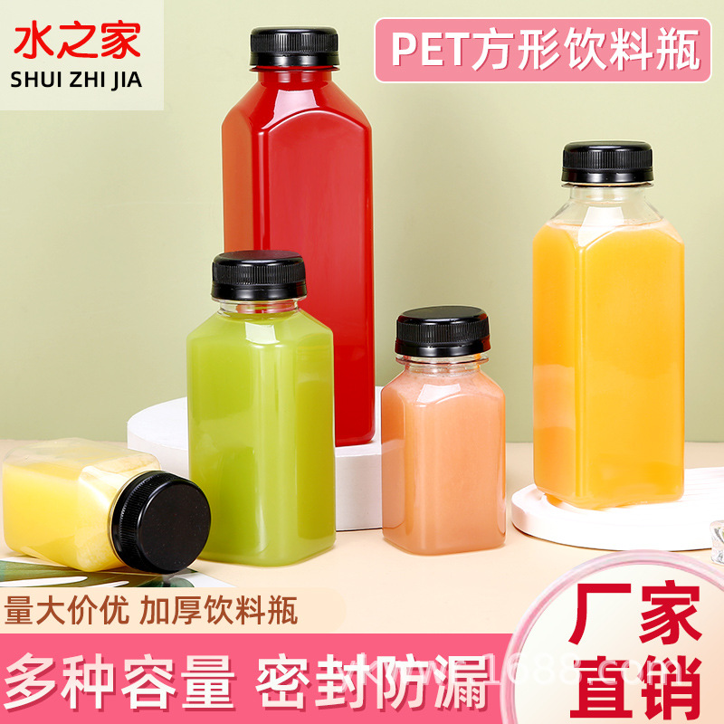 热销推荐一次性方形奶茶瓶pet塑料透明饮料瓶带盖外卖果汁打包瓶