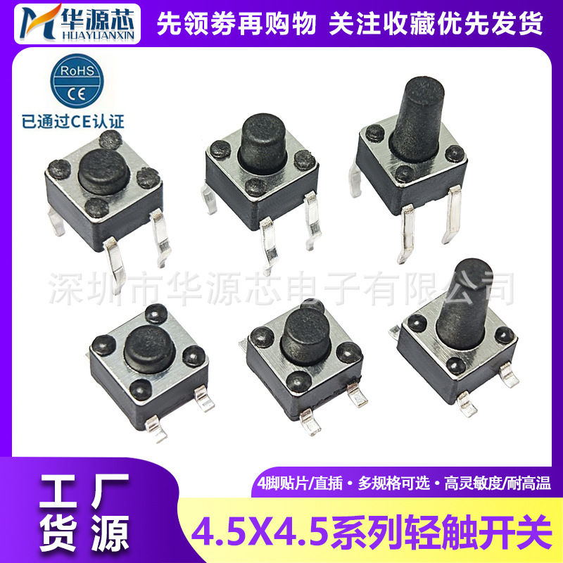 轻触开关是一种电子开关,属于电子元器件类。又叫按键开关,使用时以满足操作力的条件向开关操作方向施压开关功能闭合接通,当撤销压力时开关即断开,其内部结构是靠金属弹片受力变化来实现通断的。它的应用范围很广,在家电设备、楼宇自动化、车载设备、数字影音等多个领域广泛应用。