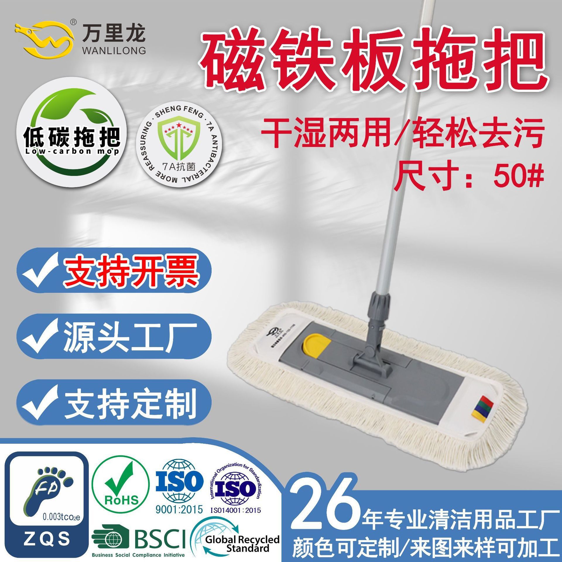 万里の龍磁気鉄板の板は卸売りして厚いモップの乾湿両用の商用吸水の列を引っ張って丈夫なほこりを押します。