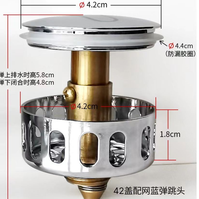 伸線面板全銅バウンス芯ステンレス製バスケット付き洗面器下水器部品洗面器下水栓