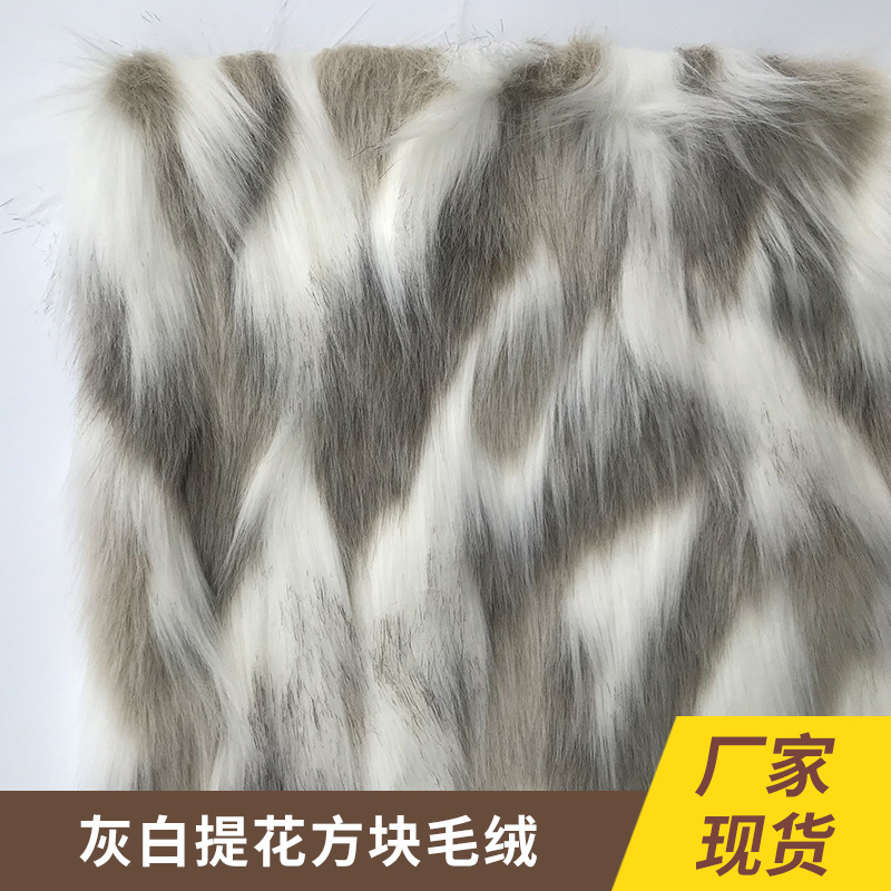 白黒ジャカードの格子の長い毛は毛皮の正方形の格子をまねてキツネの毛皮の服装の家の紡績の毛皮の生地をまねます。