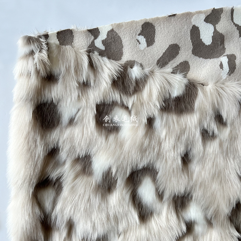 スポットキジの羽の豪華な生地グレーと白のプリント波模造毛皮プリント豪華な生地