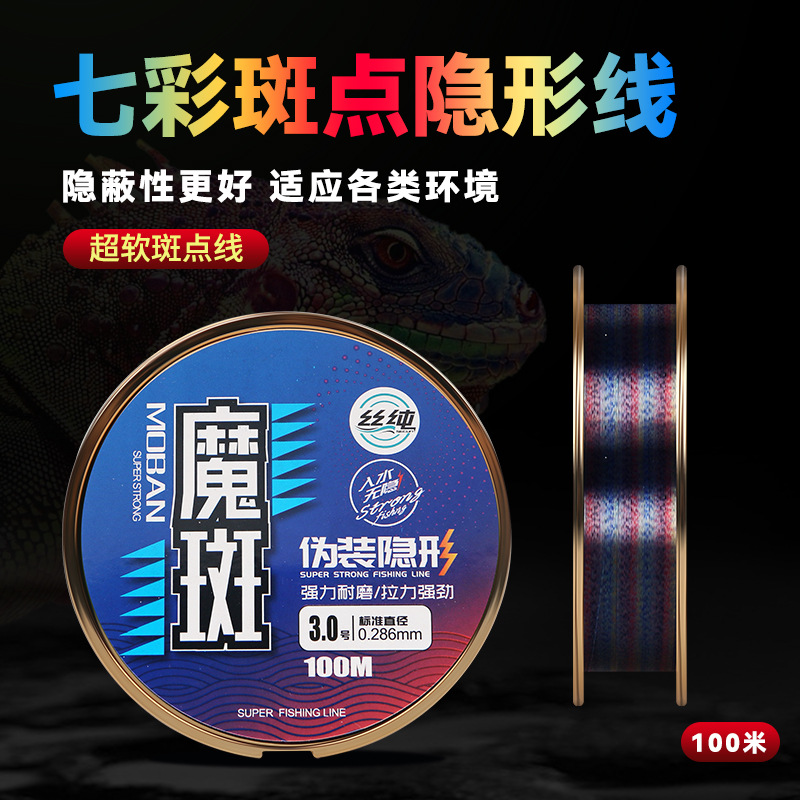 メーカー直販の七色の斑点の線の100メートルの魚の糸のメインラインの迷彩線のナイロンの釣り糸の競技線の魚の糸