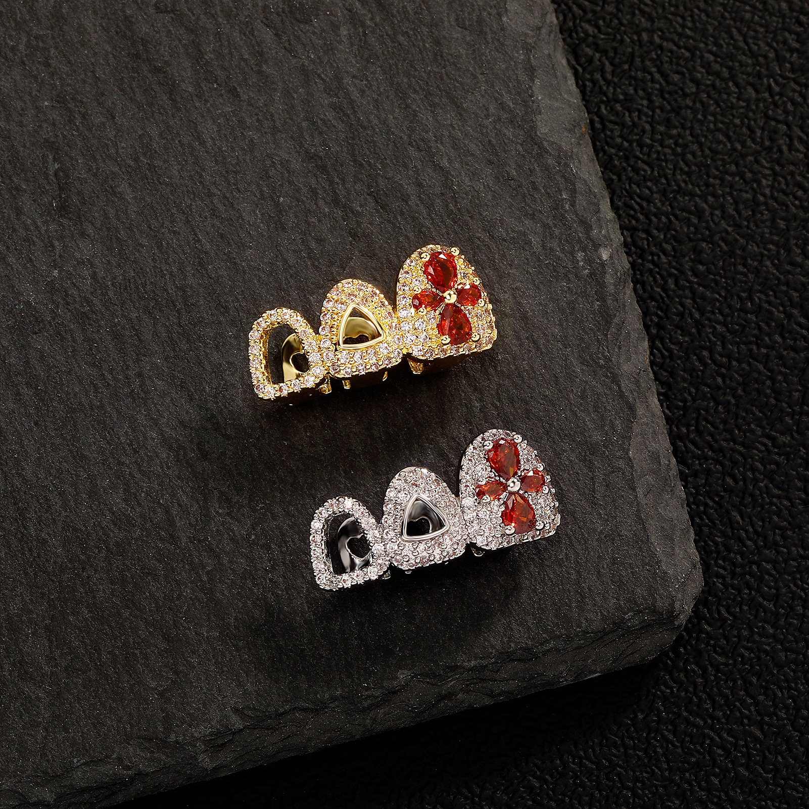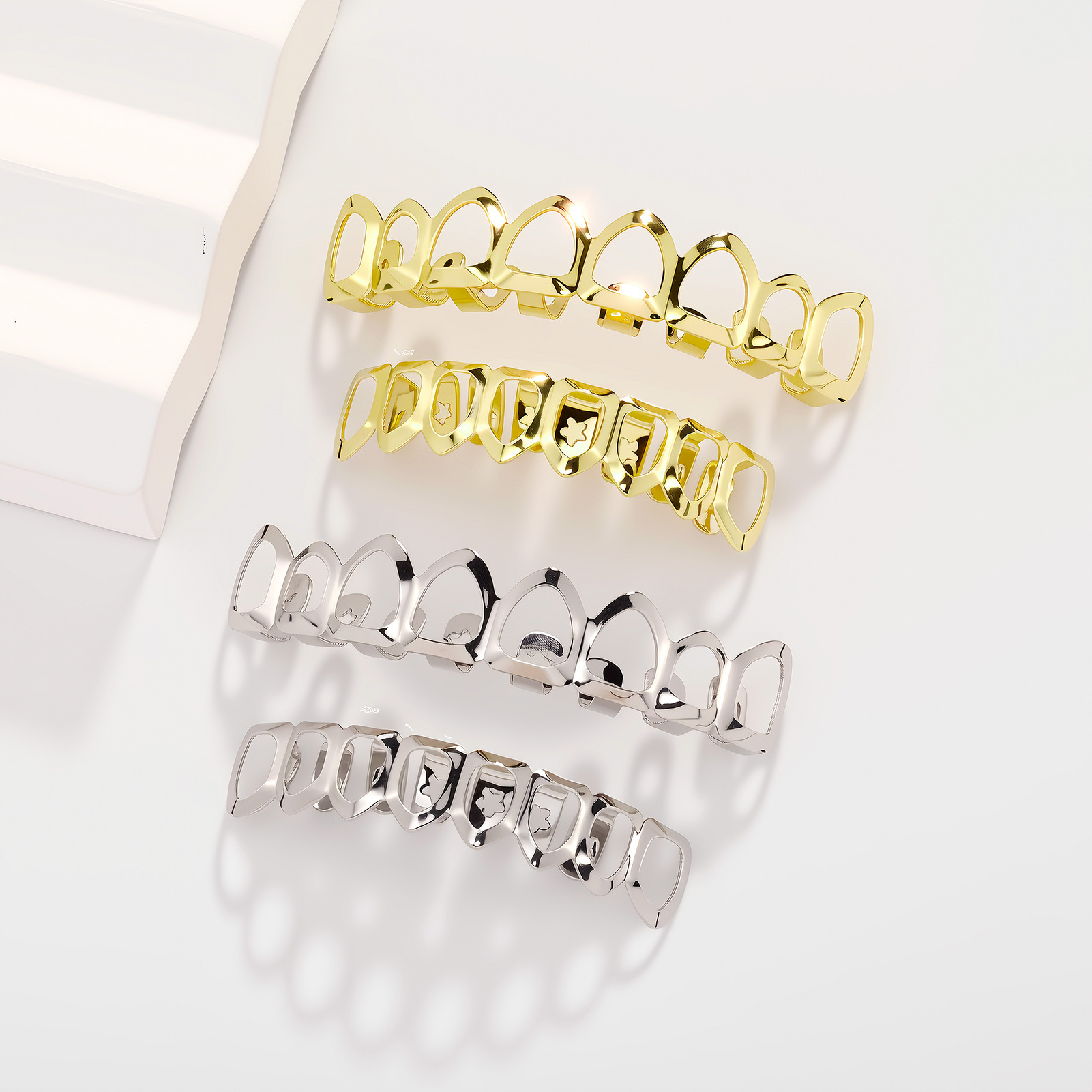 1、 将白色硅胶放放金牙的槽中。