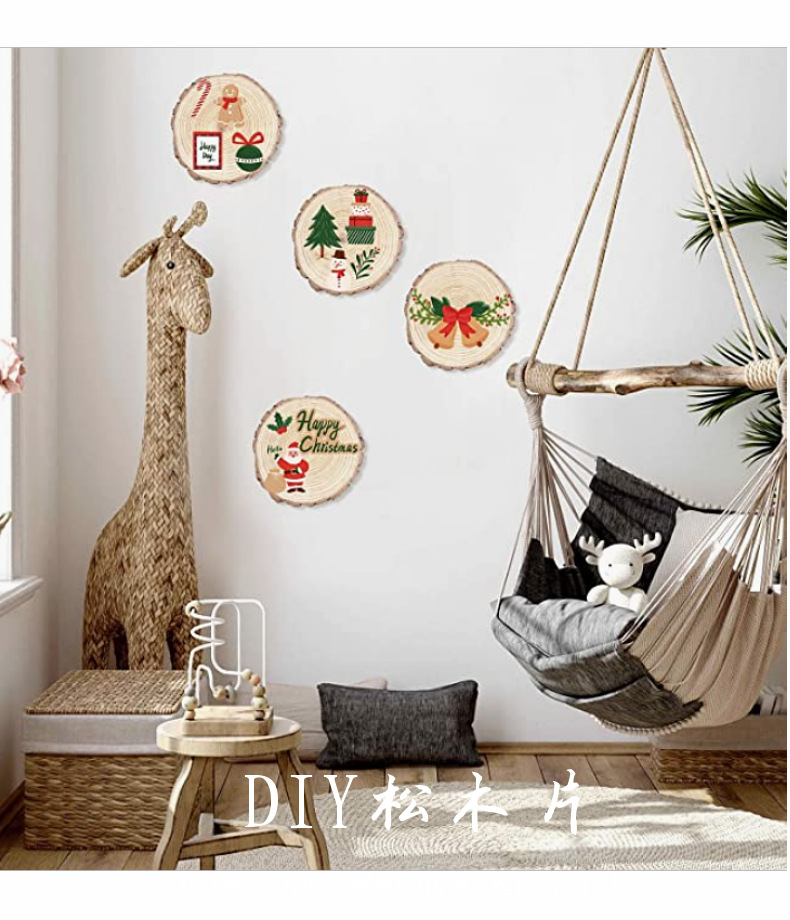圣诞惊喜派对布置松木木片DIY原木装饰片泓铭田园风