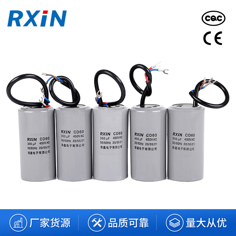 CD60 450V 电机启动电容器。引出端默认电缆线。如果需要其他规格的端子,可以直接联系我司客服定制。