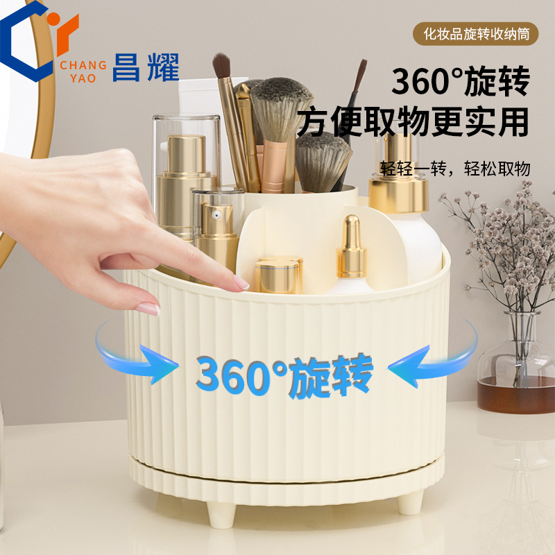 可旋转笔筒化妆品收纳盒轻奢多功能圆形化妆刷大容量桌面收纳盒