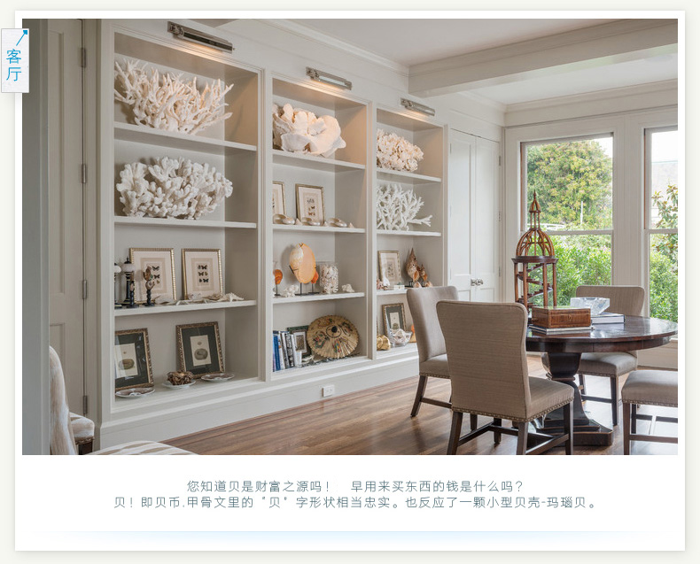 海螺、贝壳可以用来打扮家居风格,并不只是海洋风格,我们很多的在现代、英式乡村、地中海、韩式田园等等各种风格中都经常见到它们的身影,可以和任何的场景、任何的风格进行搭配