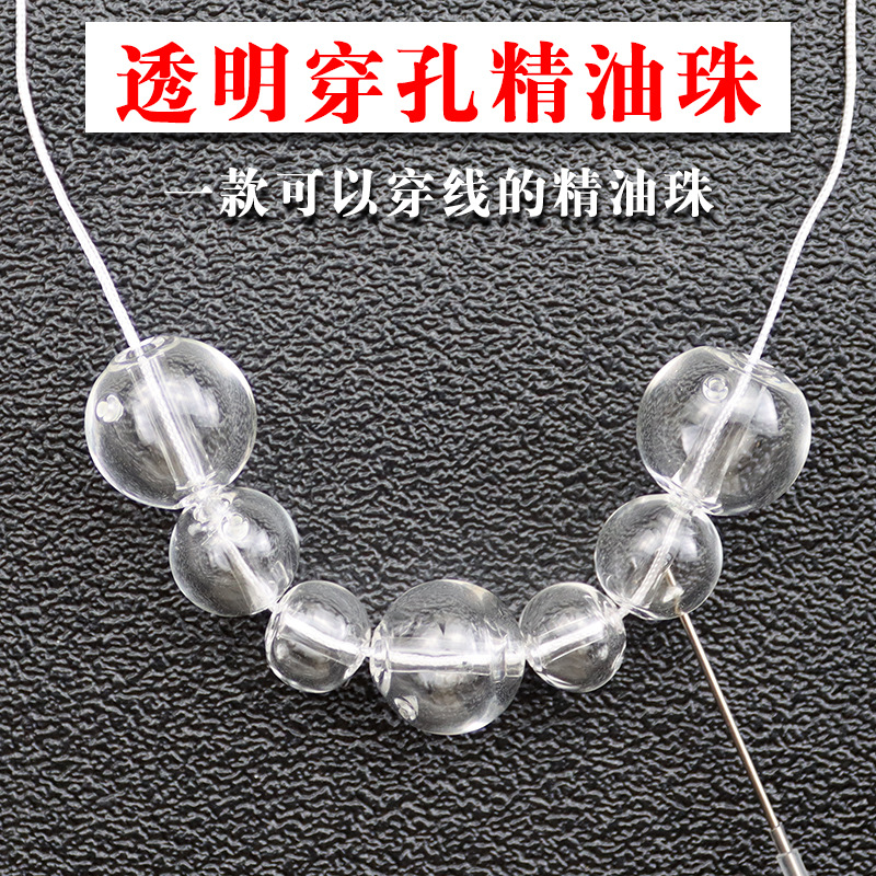 厂家批发透明空心香薰精油珠琉璃玻璃串孔圆珠穿孔精油珠精油瓶