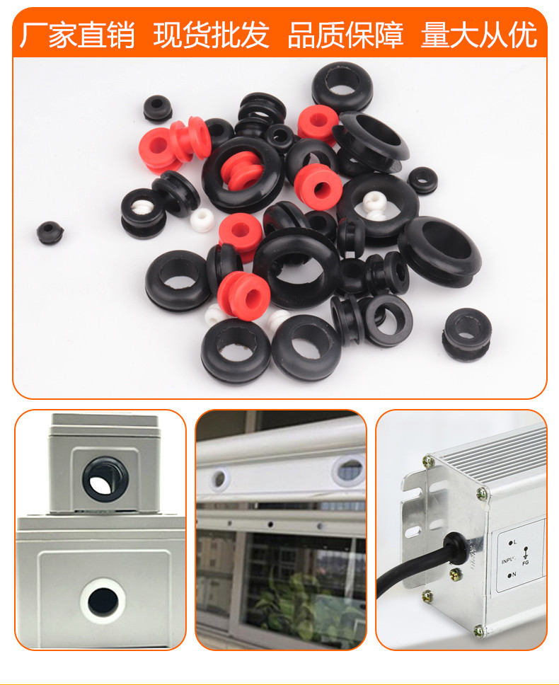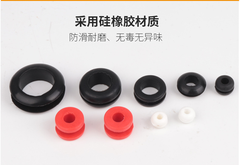 硅胶双面护线圈耐高温保护套黑色密封圈加宽槽加高电线出线过线环