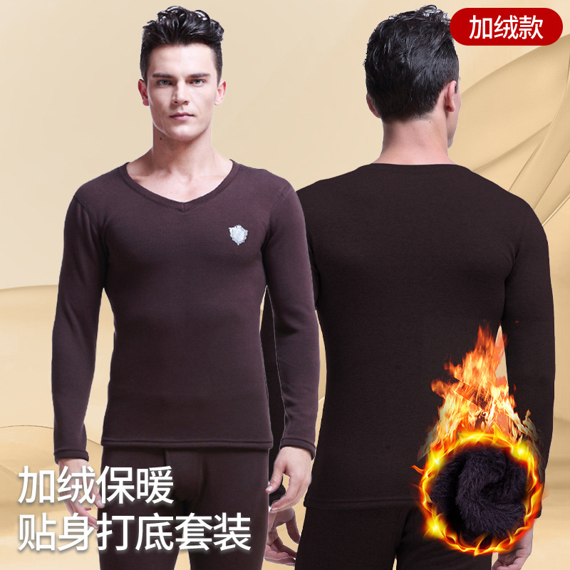 中青年男性保温スーツダウンせずベルベット厚手下着男冬二重秋衣秋ズボン修身男