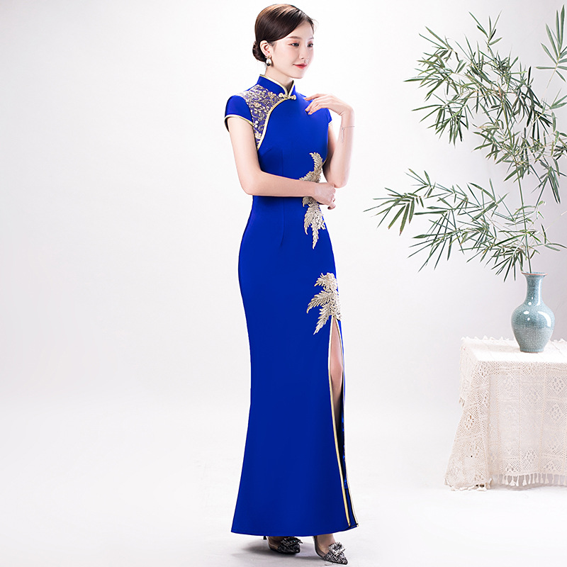 旗袍風ロングドレス、エレガントでスリムな若者向けフィッシュテールスカート、舞台衣装卸売