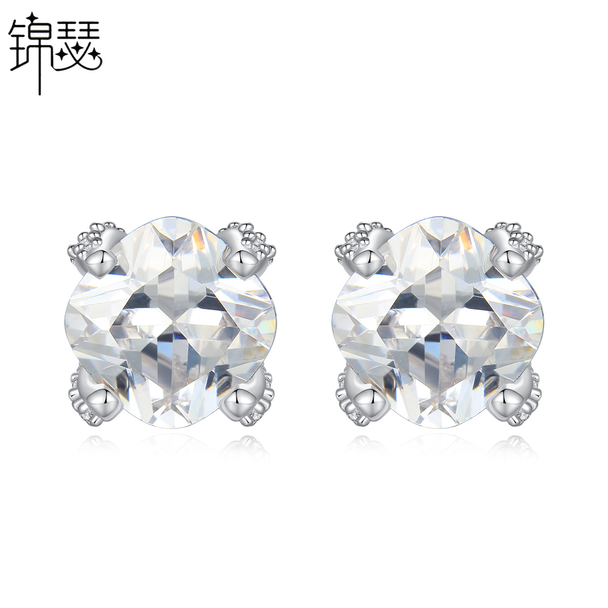 锦瑟 时尚跨境热卖女士锆石耳钉简约日常百搭四爪新款ins设计耳环