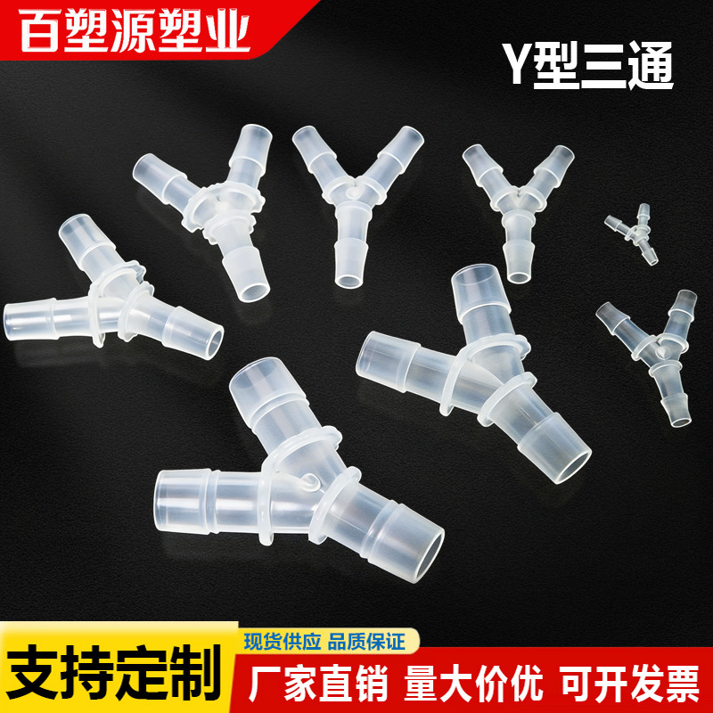 我司生产各种规格型号的塑料直通接头、三通接头、弯头、变径三通接头、四通接头。有T型三通、Y型三通、十字4通、土字型5通、直通等。产品使用的材料有以下几大类:PP、ABS 、PE、PA{尼龙} 、POM【聚甲醛】不同材料有不特性。应用范围也比较广,相比金属材质性价比好,同时具有环保无污染的特点。多应用在园林喷水喷灌、机械设备排污排水、电器管路、美容医疗器械、吸氧机、新式家用小电器、低压小气管连接、汽车管路连接等等。