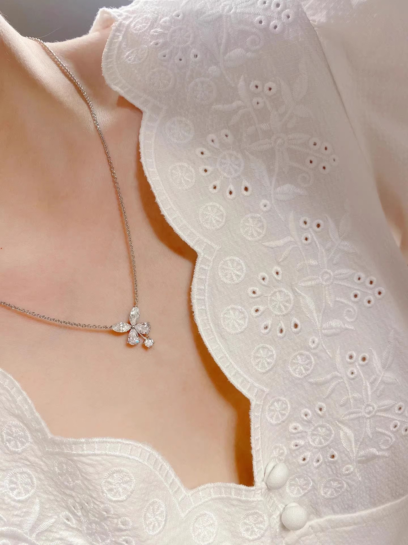 Human Li の同じ花びら蝶ネックレス女性のライト高級ニッチデザインチタン鋼非退色鎖骨チェーンジュエリー卸売