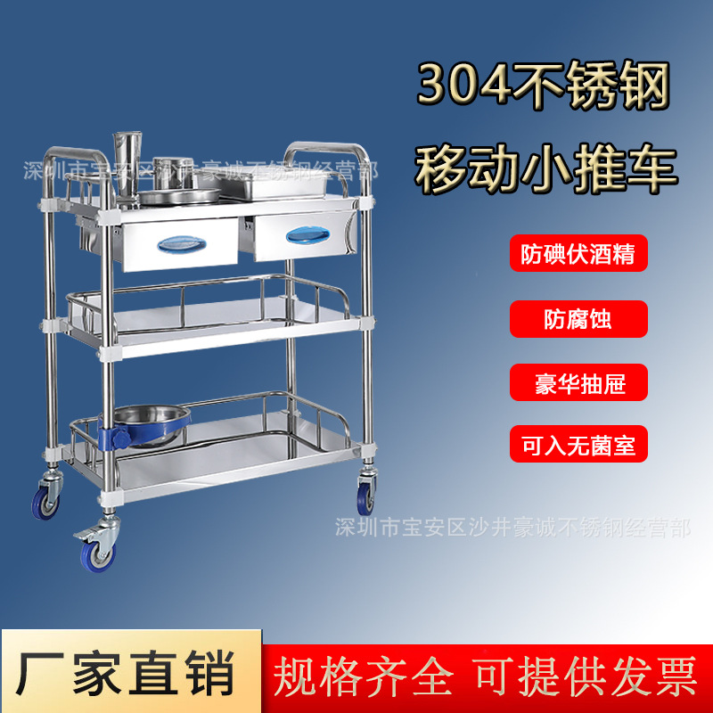 注意:因为不锈钢板面防护膜在生产时保留.保持不锈钢面板光亮,所以老板收到货安装完再撕开使用.全系规格除特小号(45*35*84)是2寸小轮,其他均为3寸大轮,车子均带2个刹车轮。