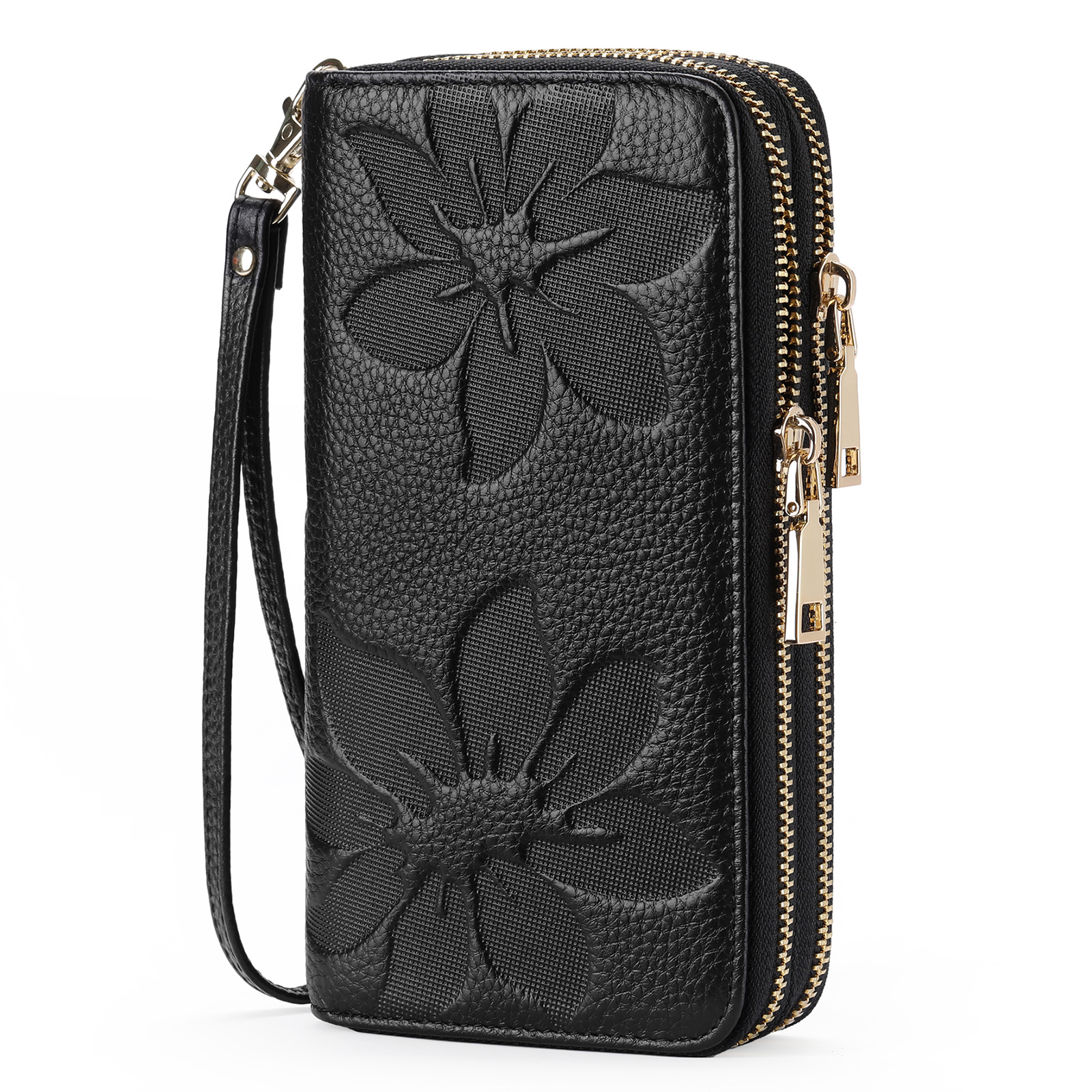 GOIACII レディース ダブルジッパー財布 RFID 大容量 ロングタイプ 本革クラッチバッグ プリントハンドバッグ
