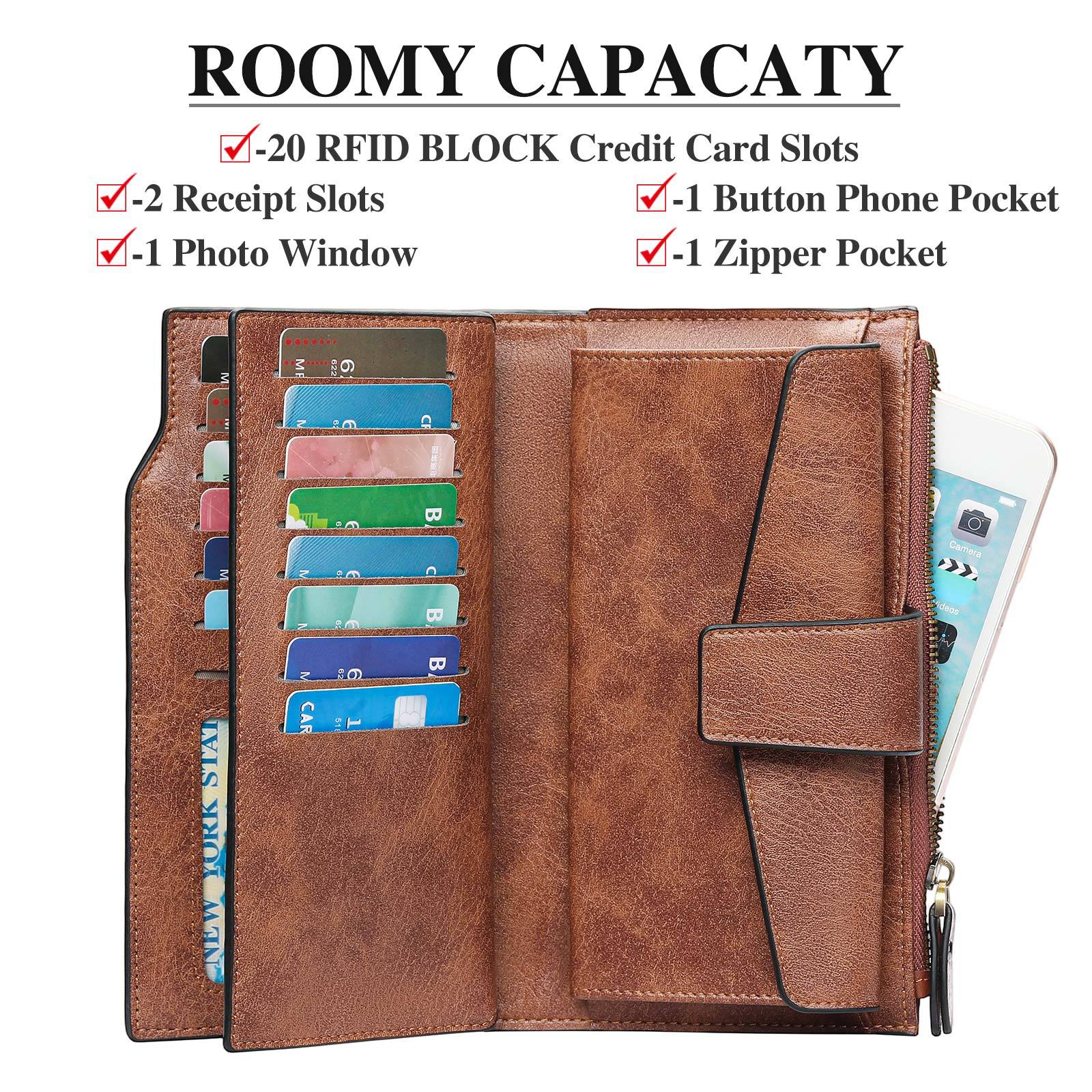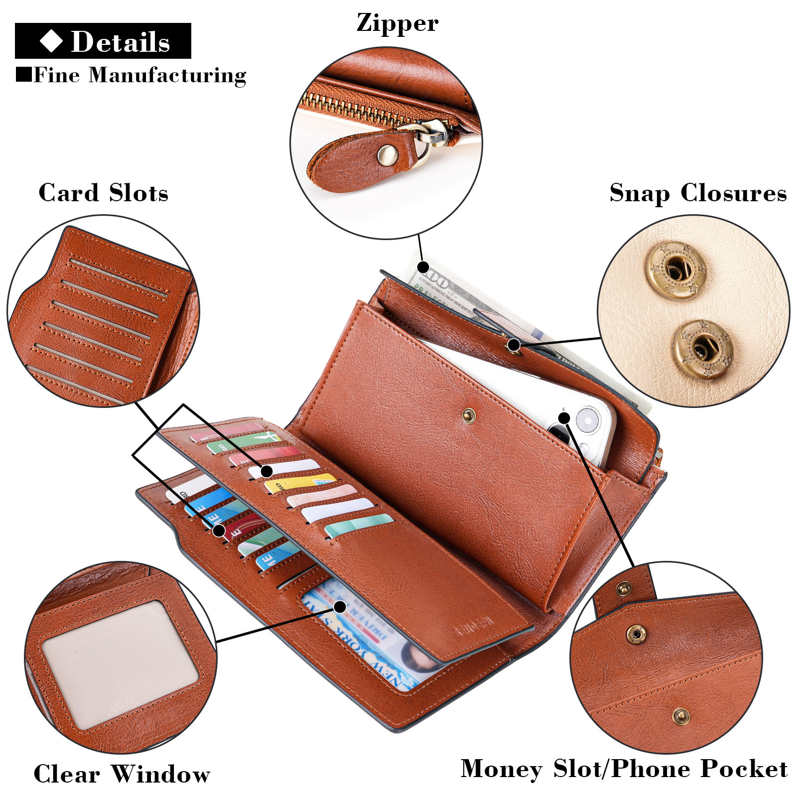 SENDEFN 欧米で人気のレディース長財布、ファスナー付き、マイクロファイバーレザー、大容量、ハンドバッグ