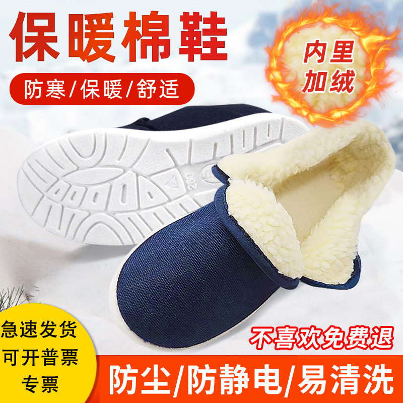 静電気防止綿靴はクリーンで厚いベルベット綿靴は低い保温綿靴冬男女食品工場労働保護綿靴である