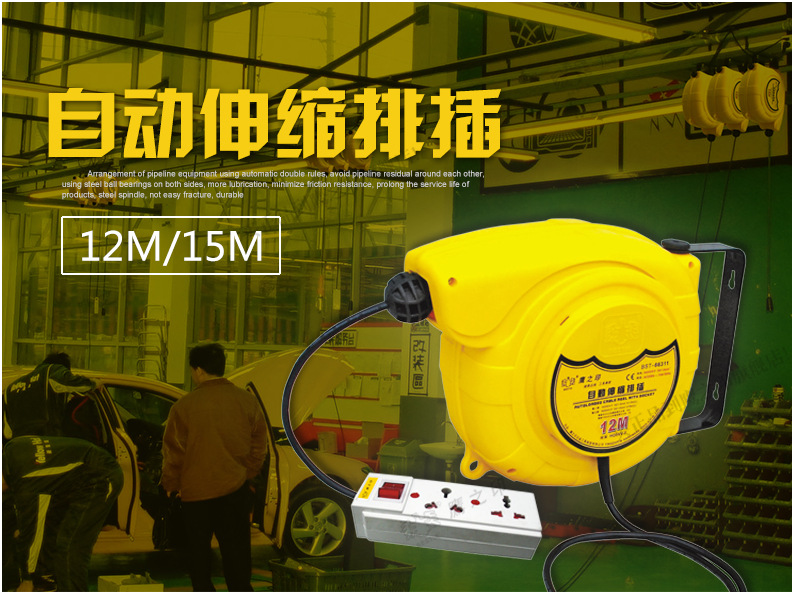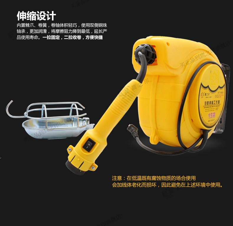 鷹の印12メートル/15メートル電気ドラム自動伸縮式ソケット/作業灯巻管器巻線器吊り輪