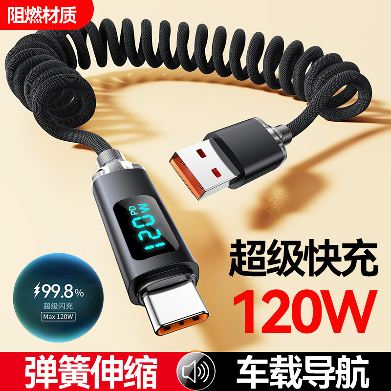 Jingyao デジタル ディスプレイ Typec データ ケーブル 120W 超高速充電スプリング Apple 15/16 Huawei 充電ケーブル 6A に適しています