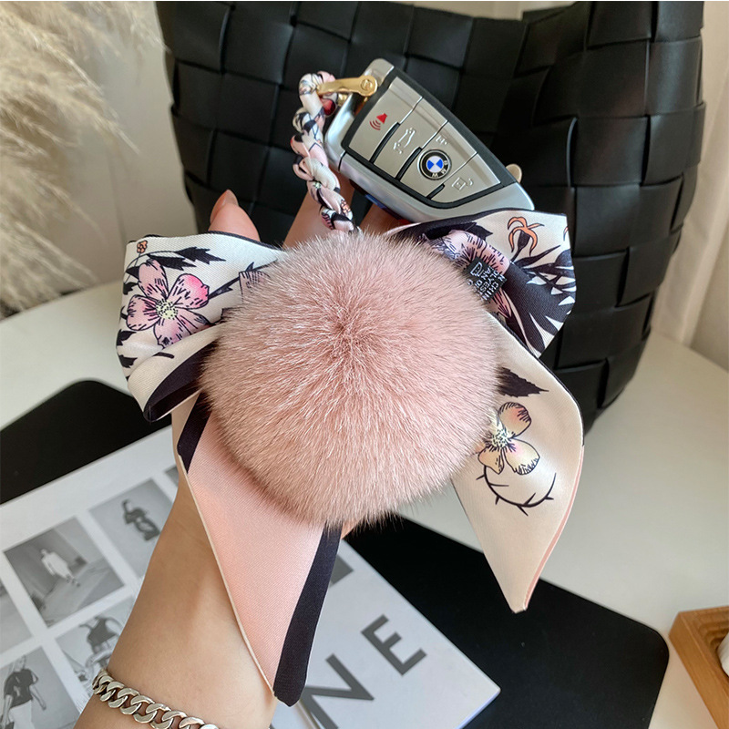 鍵のペンダントinsネットの赤いスカーフの手編みの蝶結びの毛玉のキーホルダーは自動車のキーチェーンの女性を飾ります。