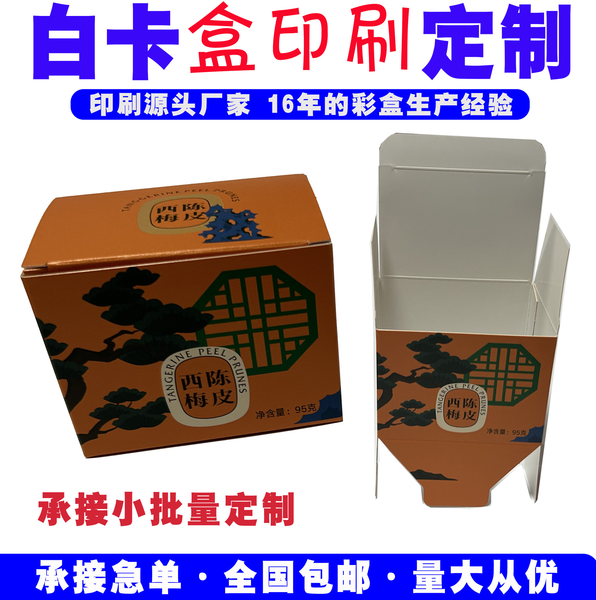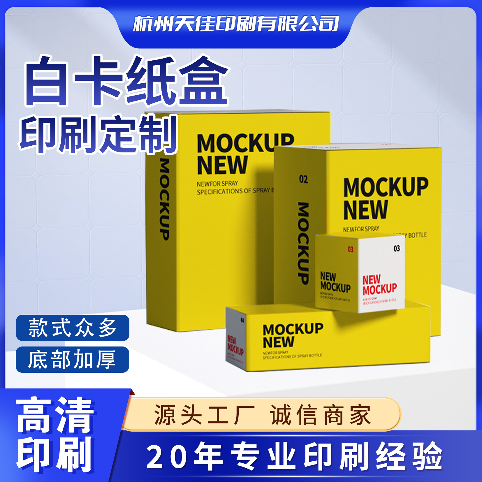 白い厚紙箱の包装箱、折りたたみ式でロゴ印刷、少量注文対応、UV加工