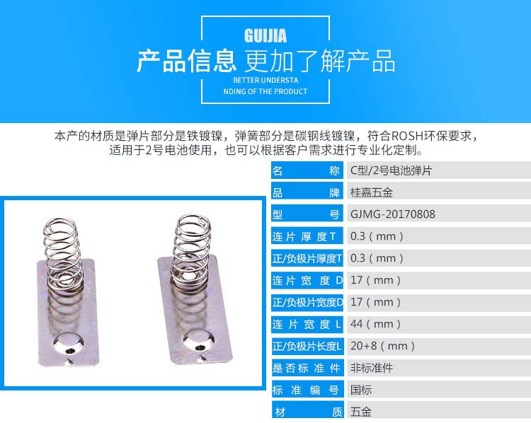 メーカー直供正負極電池接続片金物プレス部品2号5号電池ばね板7号接触片
