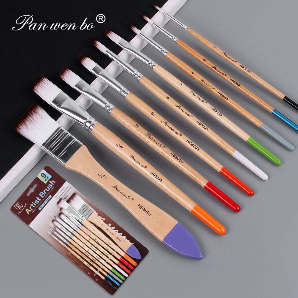 越境アマゾン ナイロン毛9本入り油絵筆セット 混合装画用落書き水彩筆