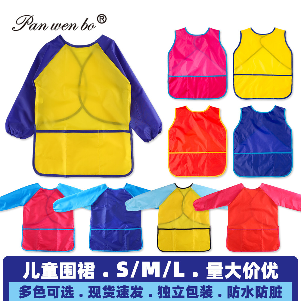 子供防水カバー幼稚園長袖エプロンセット赤ちゃん絵画ナイロンポケット大サイズ反着卸売り