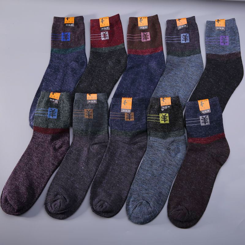 メーカーの男性カジュアルウール靴下は秋冬に保温中筒綿靴下を厚くして江湖靴下の露店を走っている