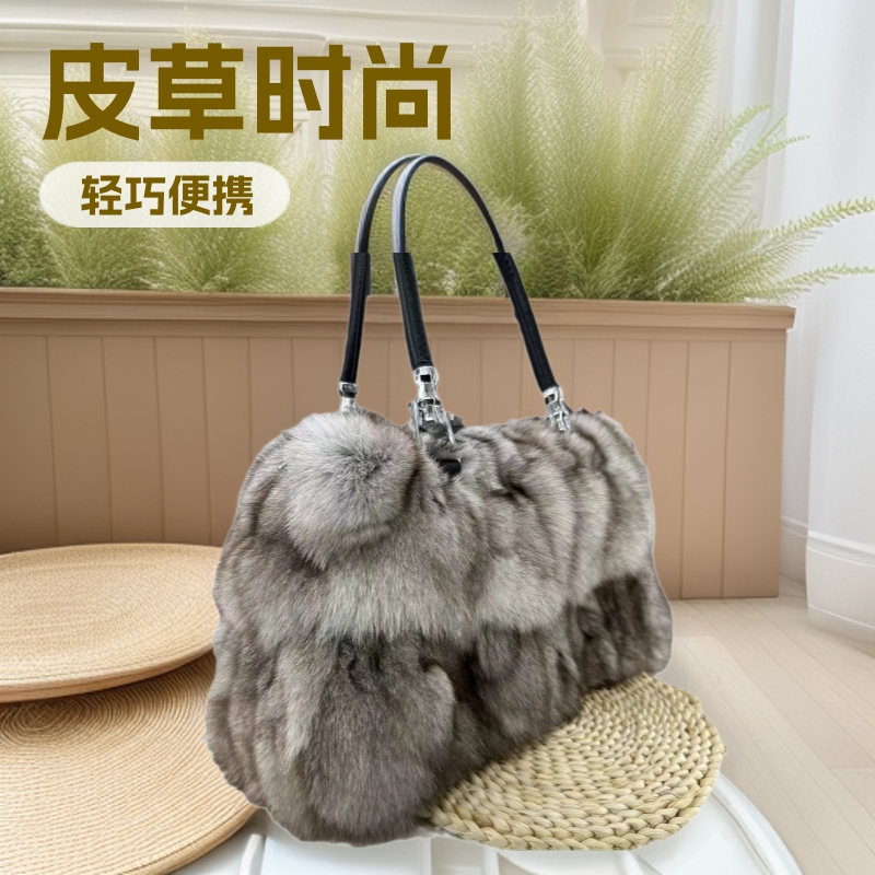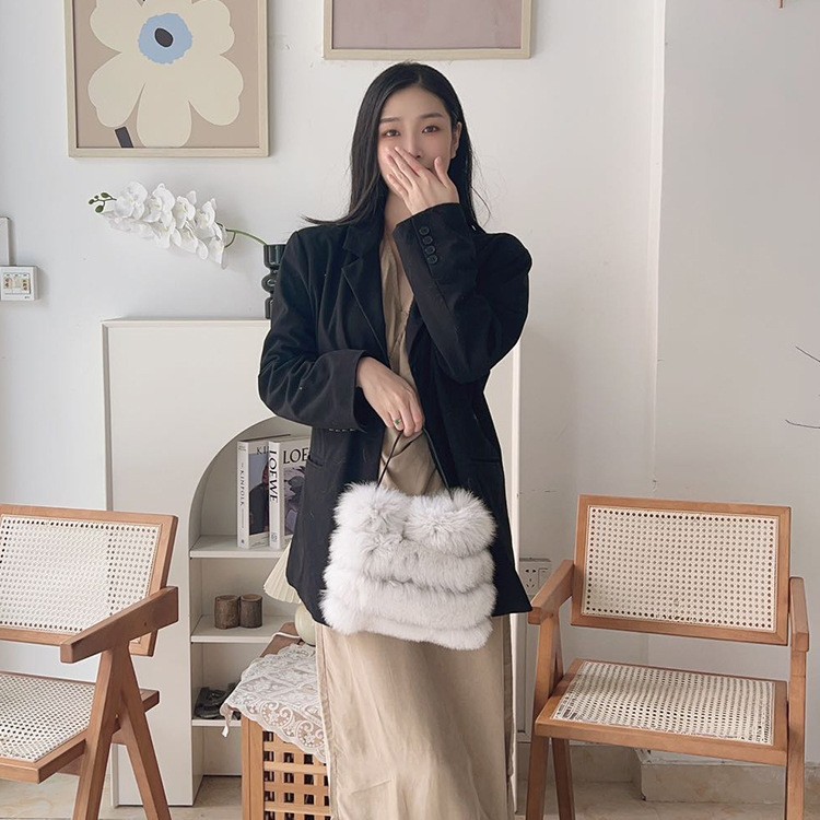 春秋冬の新型女性輸入キツネ毛バッグ真毛小ファッションバッグ