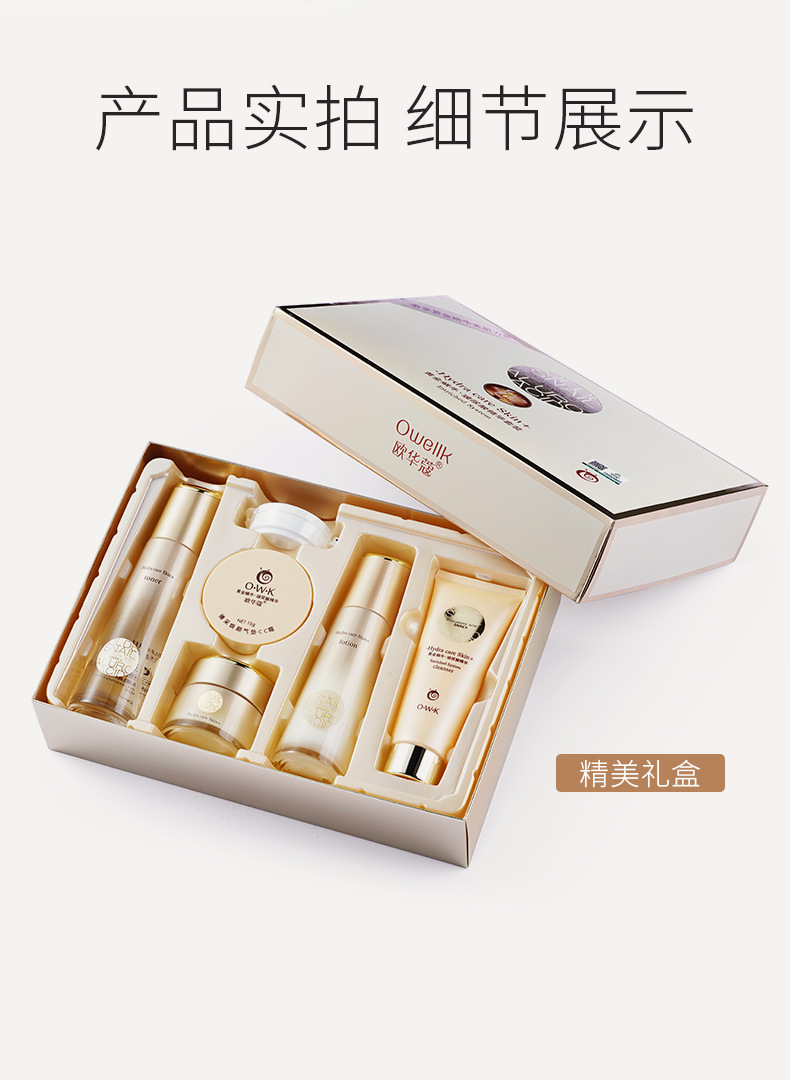 欧華コムの黄金のカタツムリは水を補って保湿します。秋冬のスキンケアのセットの顔の看護のスキンケアのセットの正規品の卸売りです。
