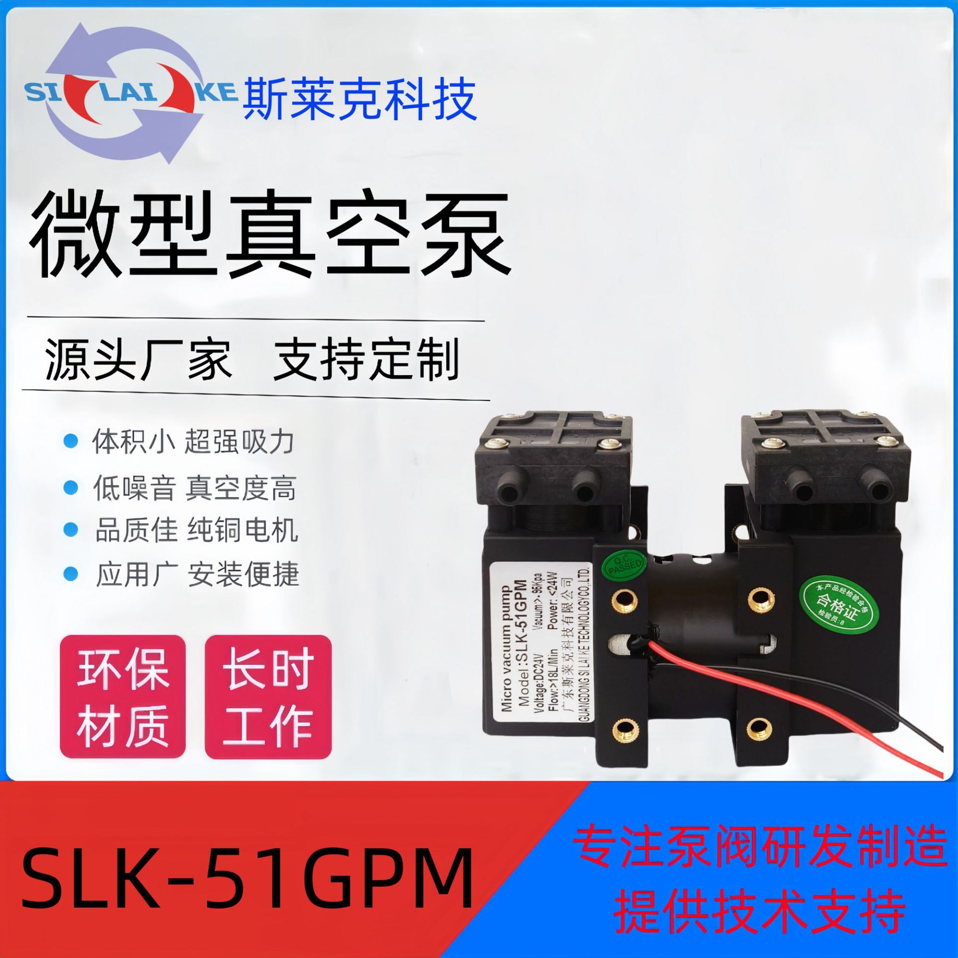 SLK-51GPM无刷活塞真空泵 负压大 强吸力 体积小 12V/24V