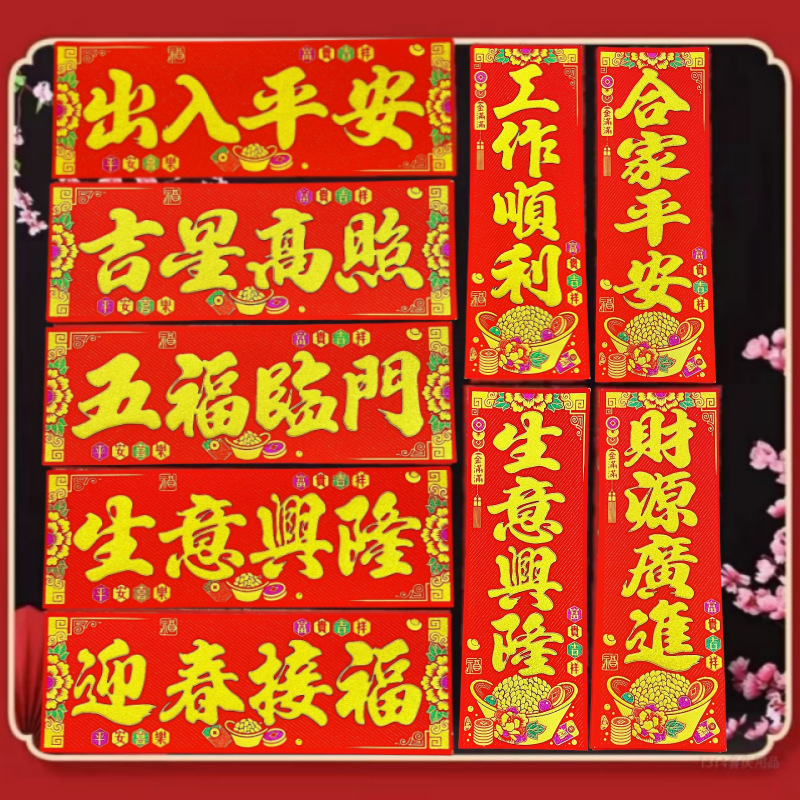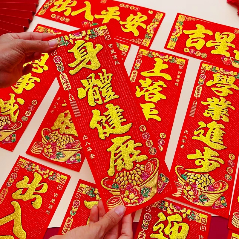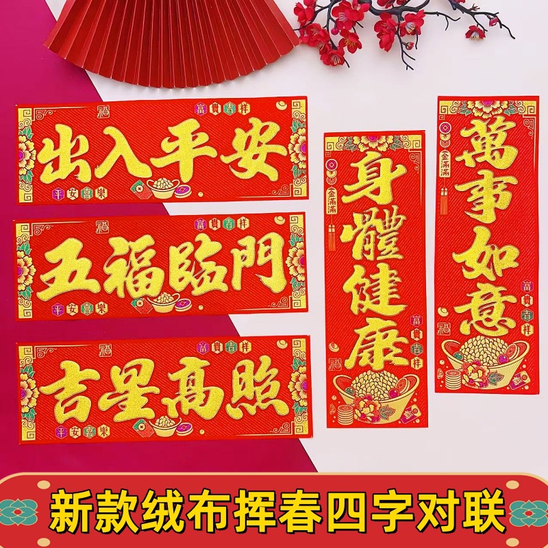 2026年新年春節対句、ベルベット生地の小春節、紅包、春節、馬年春節対句、四字春節門飾り