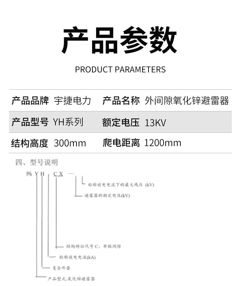 宇捷10KV外套式固定隙間型酸化亜鉛避雷器YH5CX-13/40YH10CX屋外雷保護装置
