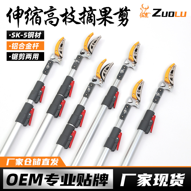 厂家批发高枝摘果剪不锈钢伸缩弹簧果枝剪子园林果树高空修枝剪刀